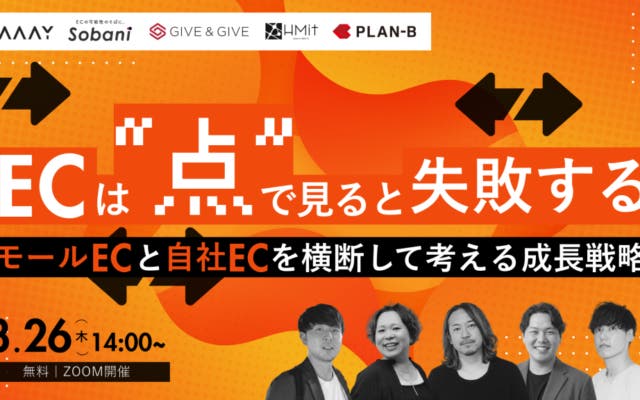 ECは“点”で見ると失敗する ― モールECと自社ECを横断して考える成長戦略 ― 日時 2026年03月26日(木) 14:00 会場 オンラインセミナー 参加費 無料 登壇者 福田 龍幸(ビジネスディベロップメント部 プロダクトマーケティングマネージャー) 受付終了