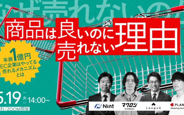 商品は良いのに売れない理由 ― 年商1億円EC企業はやってる売れるメカニズムとは ― 日時 2026年04月19日(日) 14:00 会場 オンラインセミナー 参加費 無料 登壇者 福田 龍幸(ビジネスディベロップメント部 プロダクトマーケティングマネージャー) 受付中