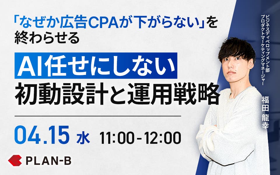 本セミナーでは、Web広告代理店として数百社の運用を支援してきたPLAN-Bが実際のデータと事例をもとに「自動化の基本とAI時代に人間がやるべきこと」 を60分で解説します。